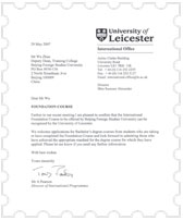 学校概况:莱斯特大学位于英格兰莱斯特,是英国最为古老的大学之一。它创建于1921年大学以提供高质量的教学与研究课程而著称,具有很强的科研实力,其水平位于全英高校前10名,在DNA 基因遗传技术及空间研究等领域享誉全球。大学图书图书馆藏书超过一百万册。计算机中心为学校的所有学生与员工提供一般性计算机服务。学生会有大约120个俱乐部和协会,海外留学生会(ISA)拥有700多名成员,是最大的学生协会之一。莱斯特大学开设众多专业,其中下列学科具有特别强的学术实力:商科,生物科学、化学、经济学、工程学、医学和物理学(包括天体物理学)。该校开设的工商管理硕士课程得到工商管理硕士协会(AMBA)的认证。